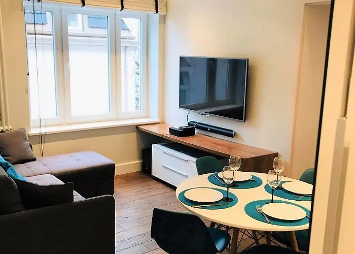 숙소는 그디니아 수족관에서 약 9km 떨어진 Sopot Centrum 지구에 위치하고 있습니다. 숙소는 소포트의 중심에서 1km 떨어진 곳에 있습니다. 이 아파트의 손님들은 The Blue Pudel, Chata Smakosza Restaurant, Sliwka w Kompot 식당을 방문할 수 있습니다.소폿 비치 및 올리바 성당는 숙소에서 몇 분 거리에 있습니다.